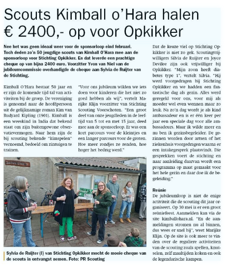 Maart 2026 – Scouts Kimball o’Hara halen € 2400,- op voor Opkikker