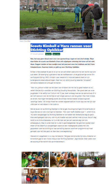 Maart 2026 – Scouts Kimball o’Hara rennen voor Stichting Opkikker